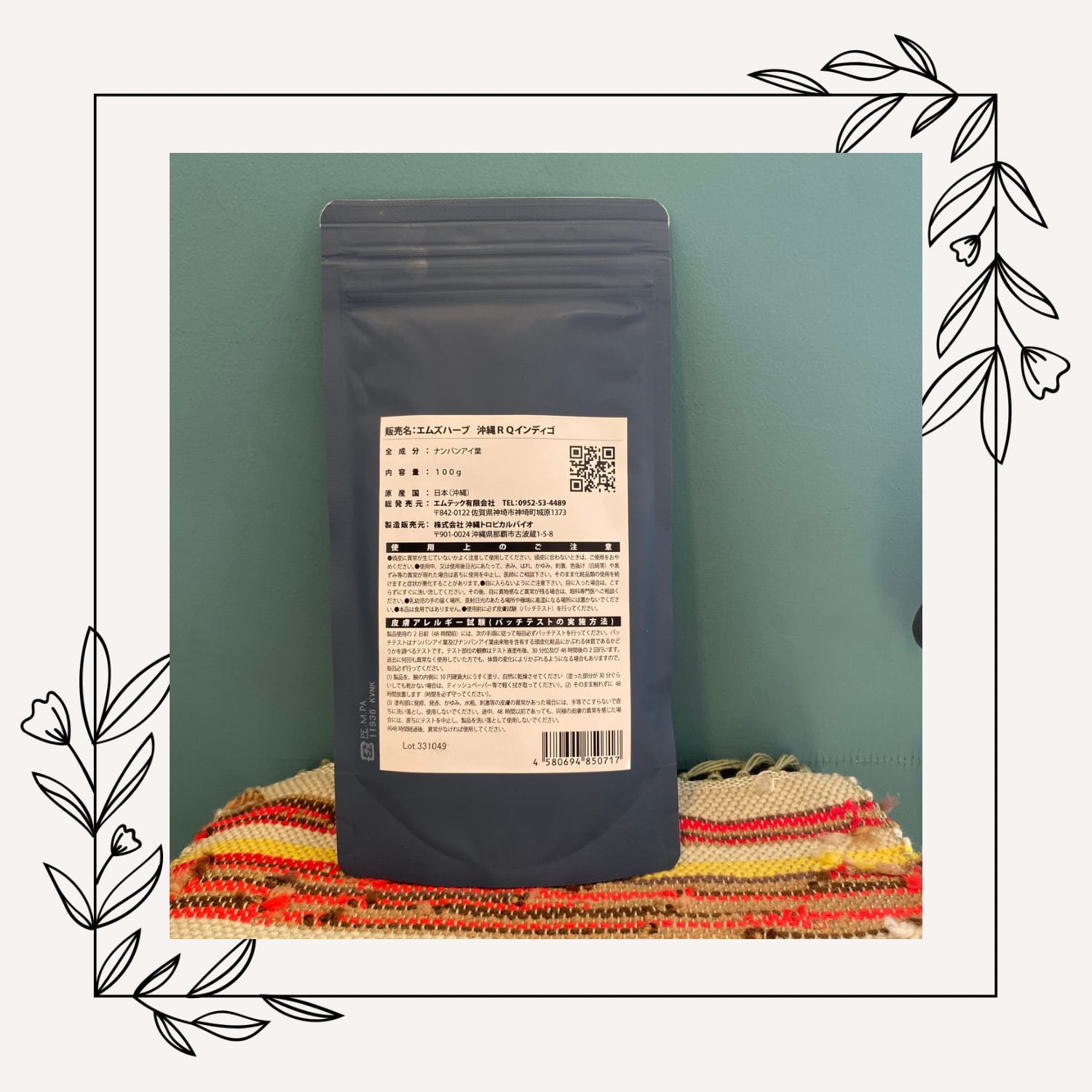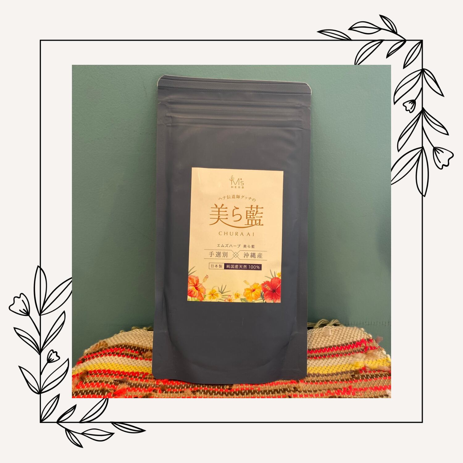 美ら藍は、沖縄で栽培されたナンバ藍のみを使用した100%天然インディゴパウダーです。